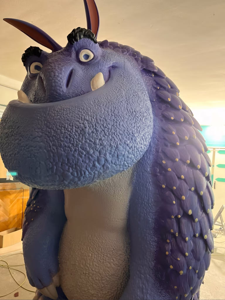 Para elegir el material, analizamos el volumen, uso y el entorno donde va a estar la escultura. Principalmente creamos una estructura de pla y después la cubrimos con resina para darle un acabado premium o protección solar y o fibra de vidrio, para darle resistencia y durabilidad.